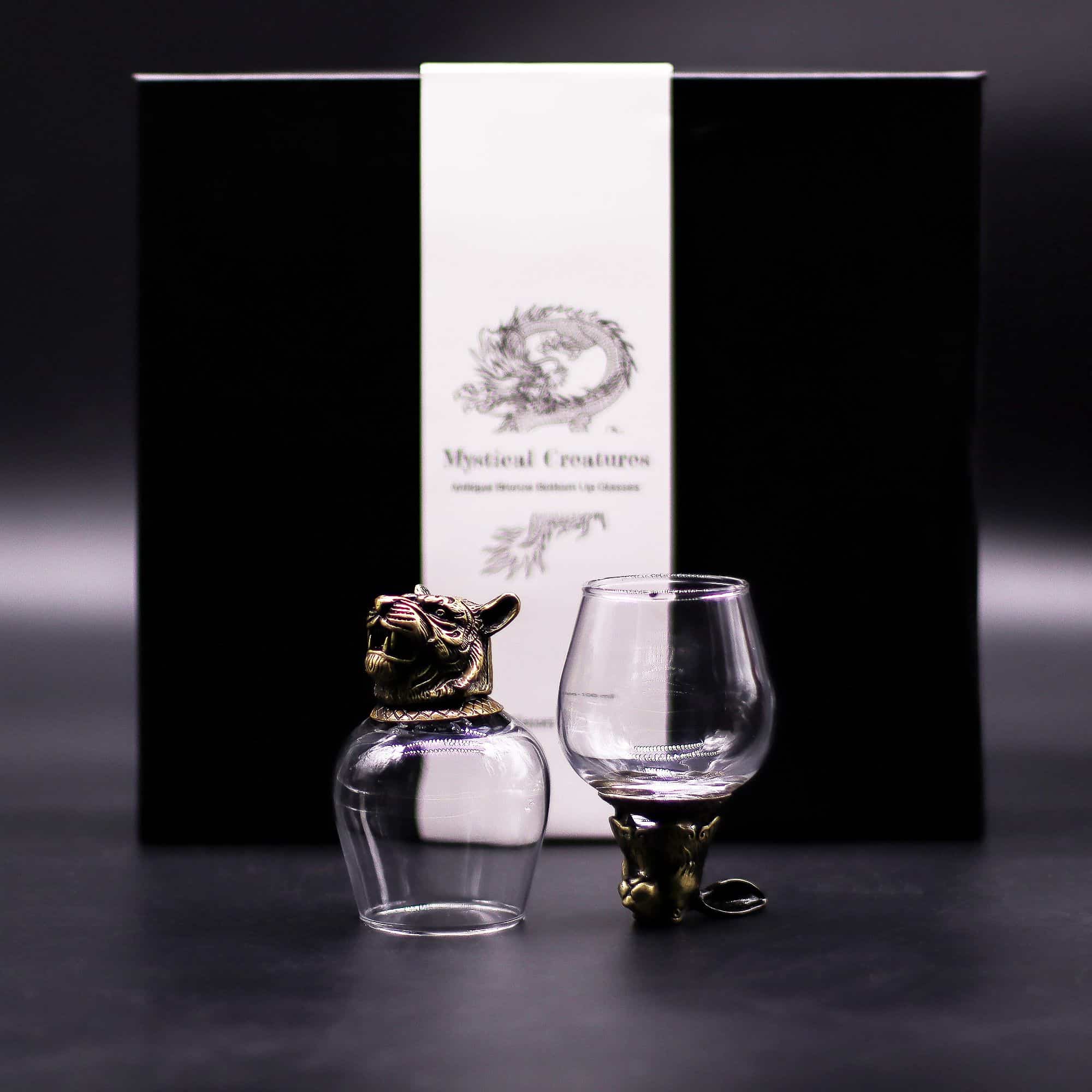 Cada vaso está elaborado con un recipiente de cristal claro montado en una base ornamentada de efecto bronce antiguo, destacando seis poderosas criaturas místicas: el Elefante (sabiduría), el Tigre (fuerza), la Serpiente (transformación), el Dragón (poder y fortuna), el Conejo (prosperidad) y el Buey (perseverancia). Su encanto simbólico los hace especialmente atractivos como regalos, objetos de exhibición o tesoros de colección.